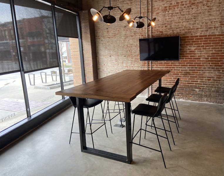 Host your next business meeting in our beautiful conference room located in SquareWork on the historic Liberty Square. The J.J. Stogdale room comfortably seats 6-8 people and is equipped with a TV monitor with Apple…